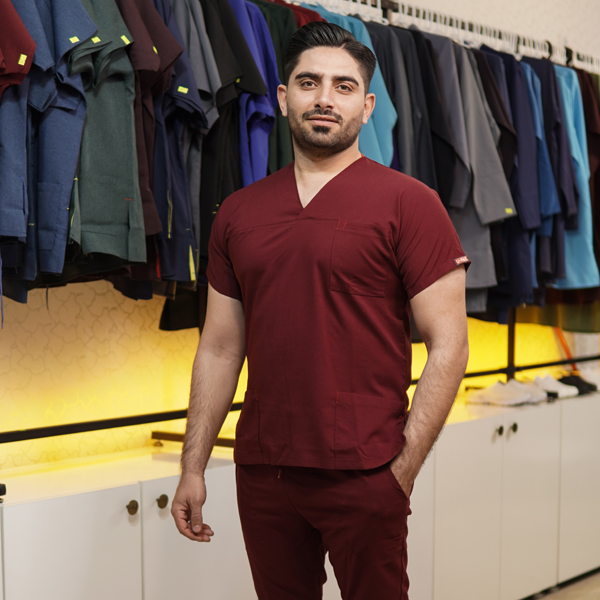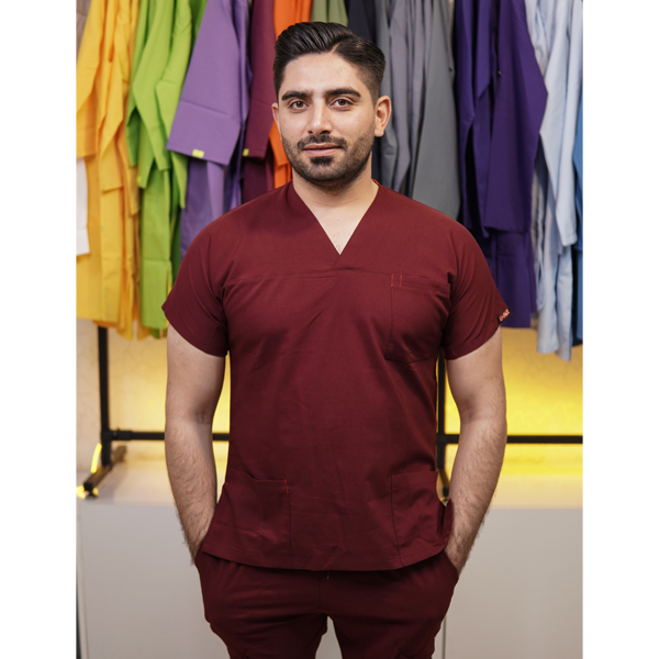 خرید محصول اسکراب شلوار یوفلکس رنگ زرشکی روشن