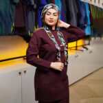تونیک شلوار مدل سیزگی رنگ زرشکی تیره